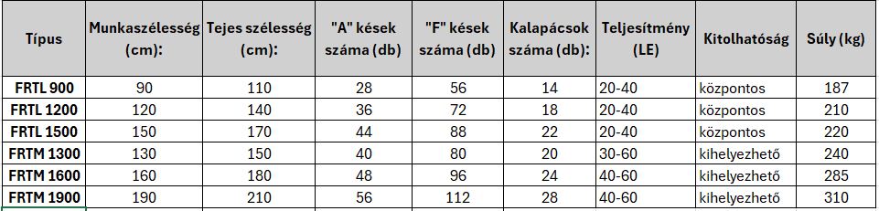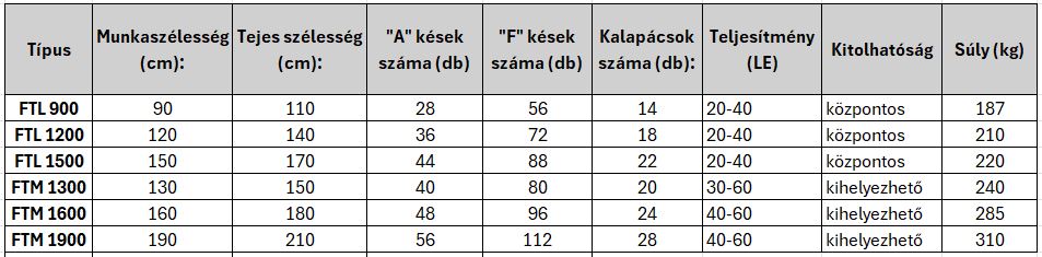 Rendelhető vátozatok, műszaki adatok: